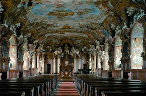 We Wrocławiu moĹźna również obejrzeć jedno z największych w Polsce barokowych wnętrz, jakie zachowało się do naszych czasów. Jest nim Aula Leopoldyńska mieszcząca się w osiemnastowiecznym gmachu Uniwersytetu.